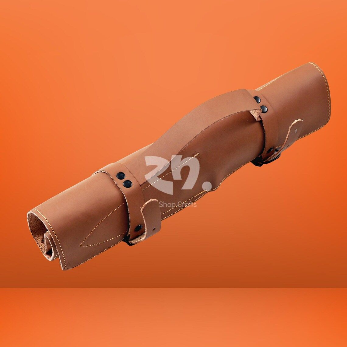 – The leather roll bag keeps the knives organized and protected when not in use.
