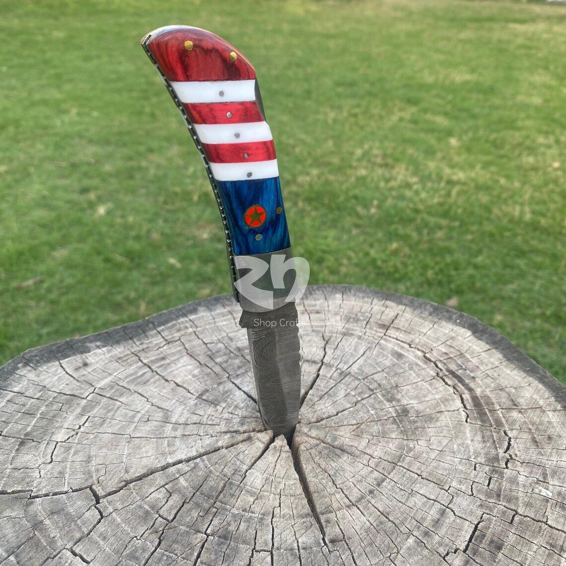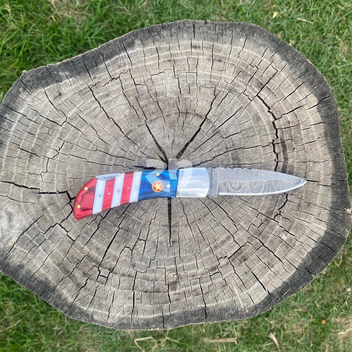 This American flag Damascus steel folding pocket knife blends patriotic design with everyday functionality. Inspired by the spirit of the USA, it features a bold flag-themed look that stands out while staying practical. From daily carry to special occasions, this knife represents pride, strength, and craftsmanship. As a result, it appeals to collectors, outdoor enthusiasts, and anyone who values American-inspired gear.