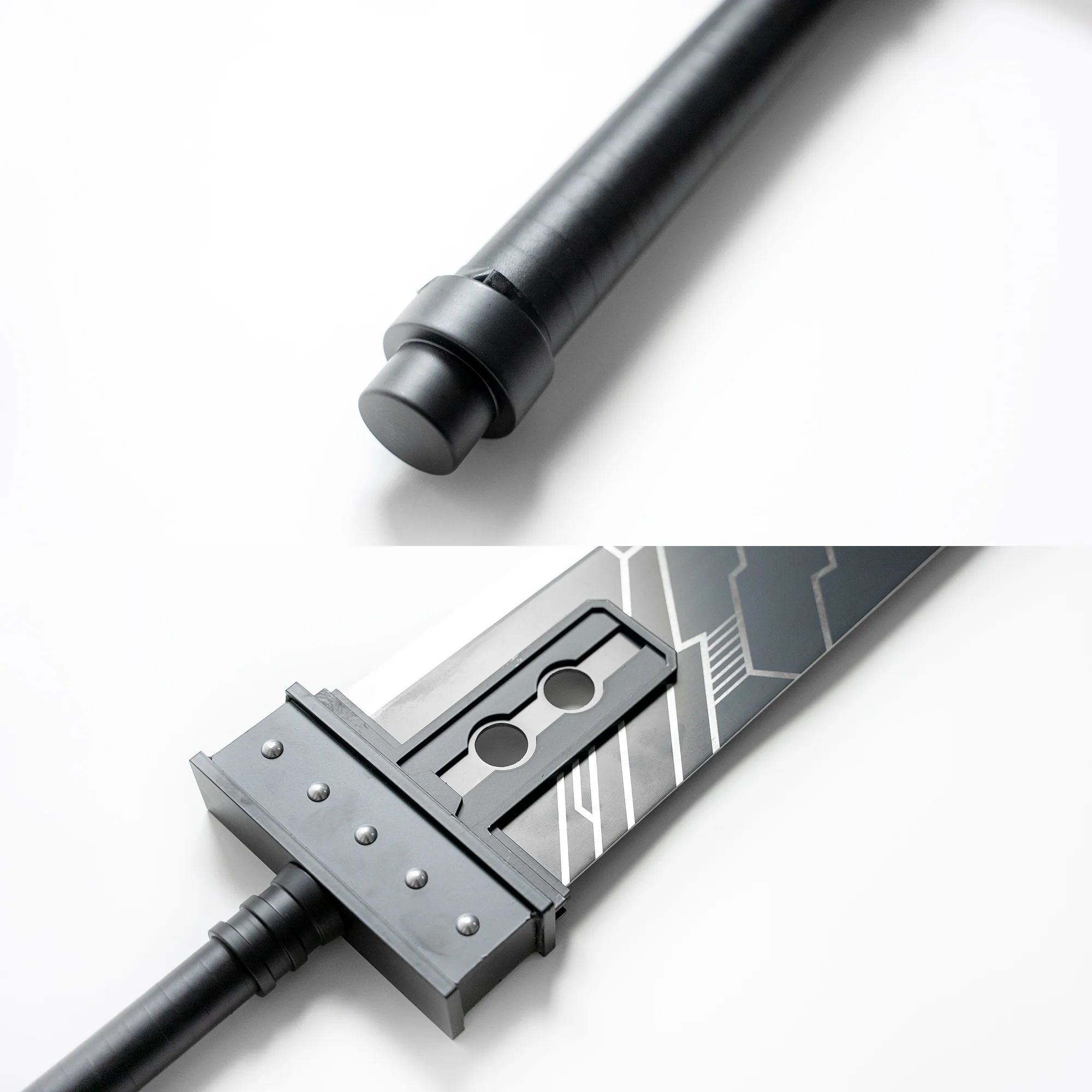 Leather-wrapped handle for a secure and comfortable grip that mimics Cloud’s weapon design.