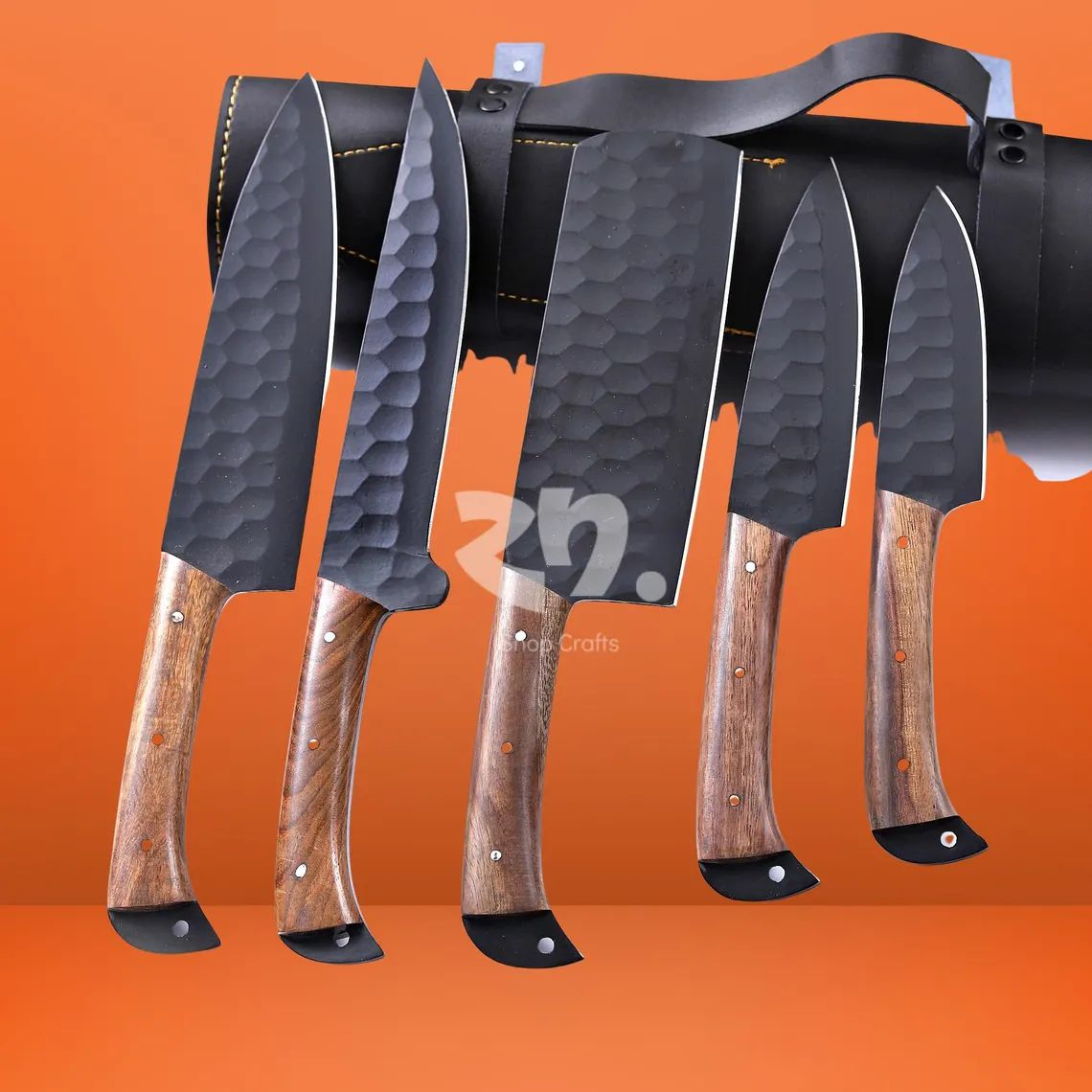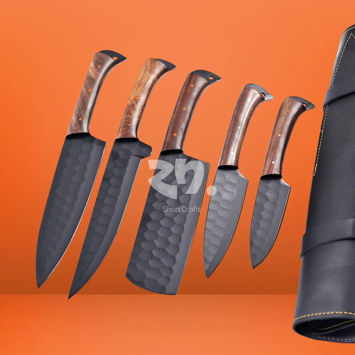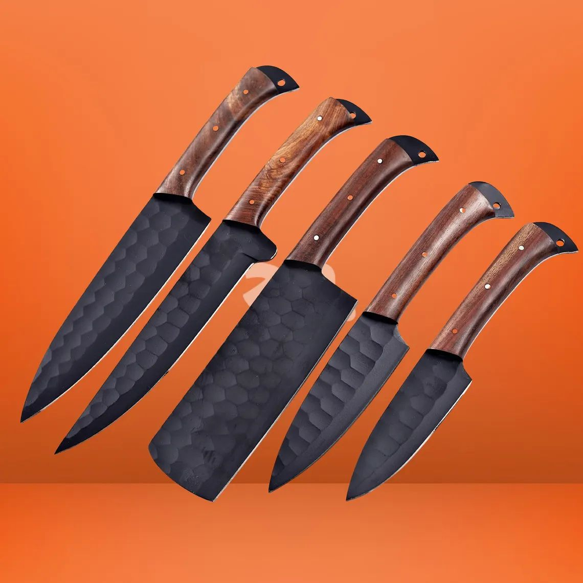 Upgrade your kitchen with this hand forged black powder coated 5-piece chef knife set—durable, sharp, and designed for professional performance, fast shipping, and everyday cooking convenience.