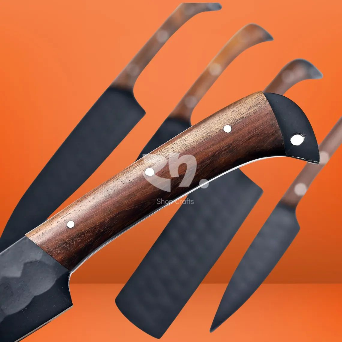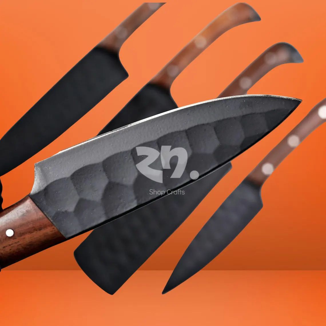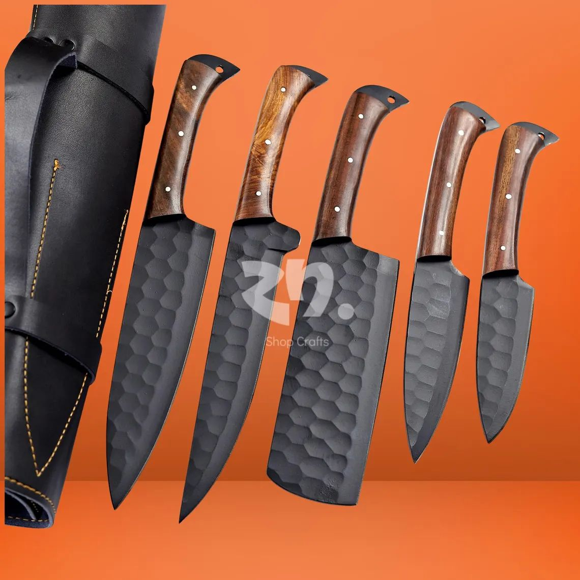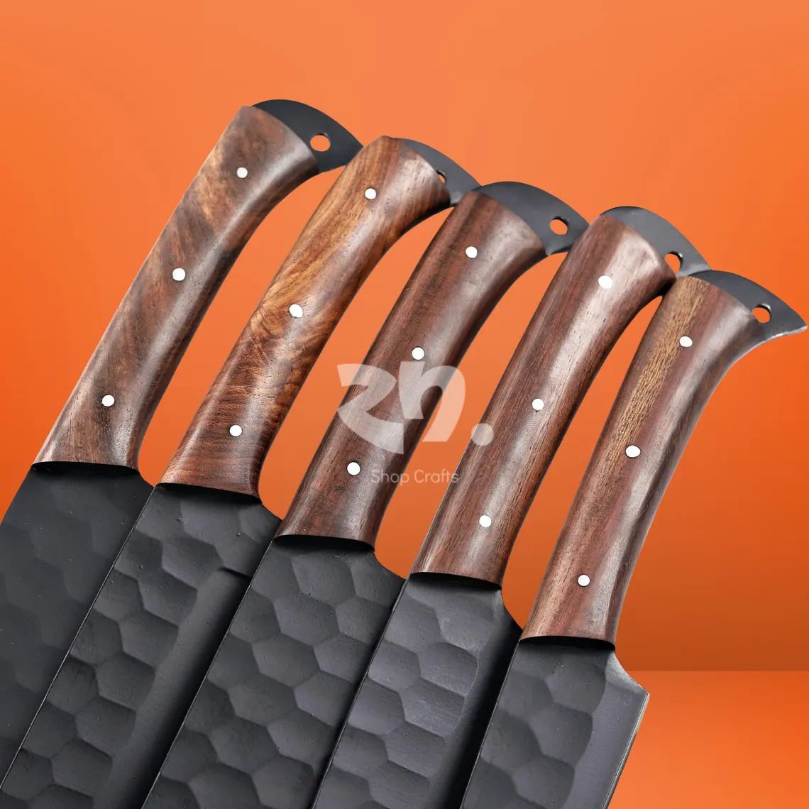 Upgrade your kitchen with this hand forged black powder coated 5-piece chef knife set—durable, sharp, and designed for professional performance, fast shipping, and everyday cooking convenience.