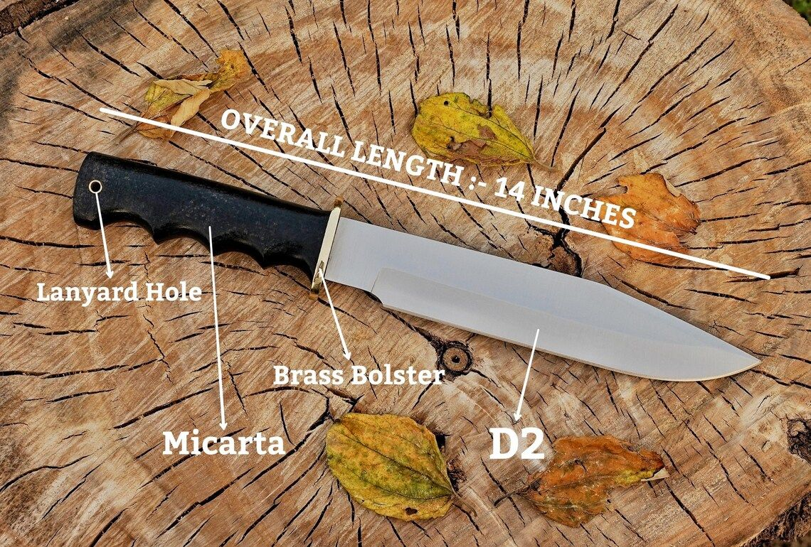 Upgrade your hunting and survival gear with this 14-inch hand-forged D2 steel Bowie knife set—durable, sharp, and crafted for outdoor excellence.