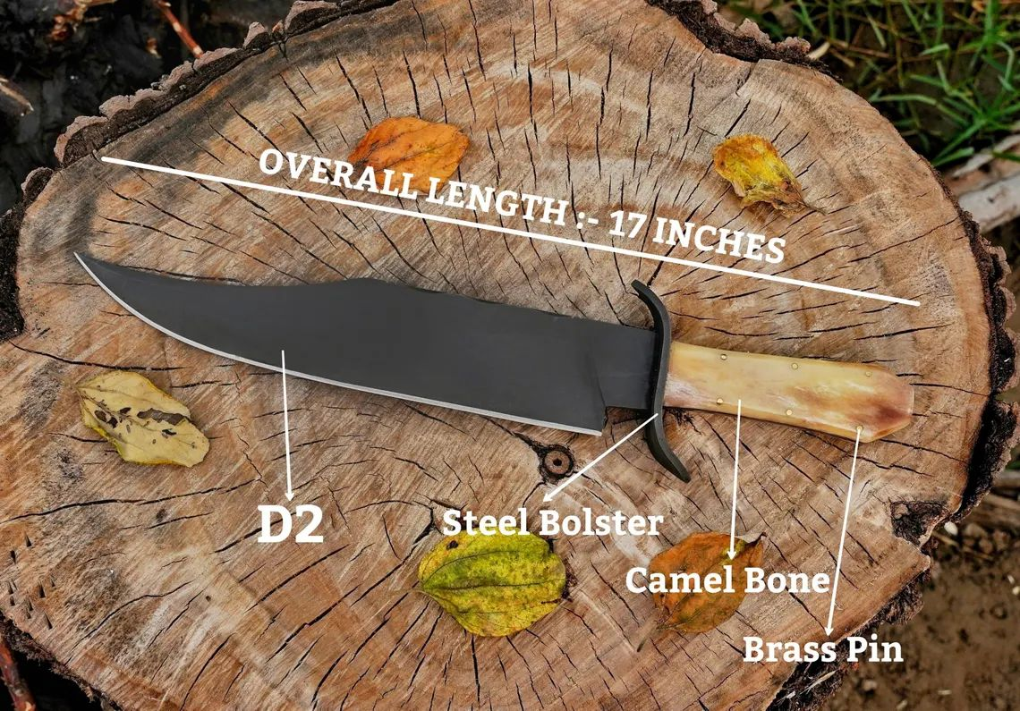 Juan Padillo Bowie Knife Replica – Custom Handmade D2 Steel Blade – Aged Finish with Stabilized Bone Handle, Valentine Day Gift for Him.