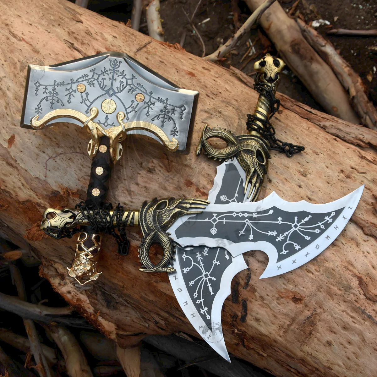 • Set of Kratos Blades of Chaos and Thor Mjolnir Hammer